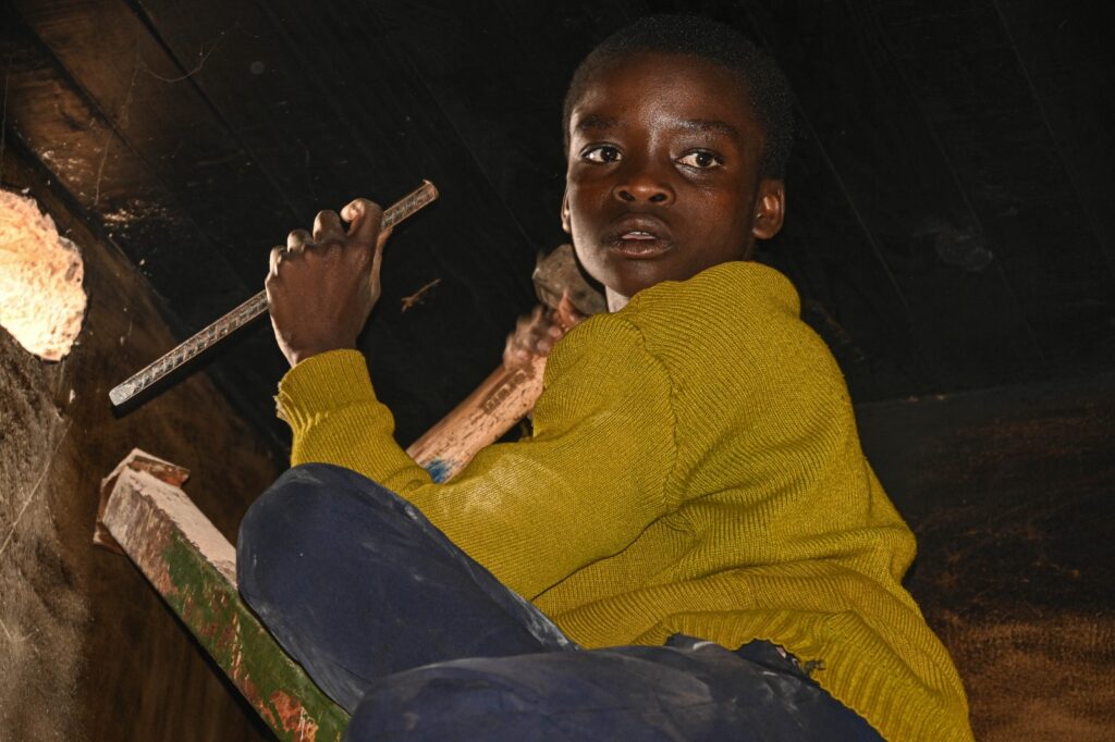 Ein Loch für den Abzug wird unterhalb der Decke in die Wand gespitzt. Bei der ganzen Arbeit sind die Lehrlinge dabei, vieles dürfen sie selbst erledigen.